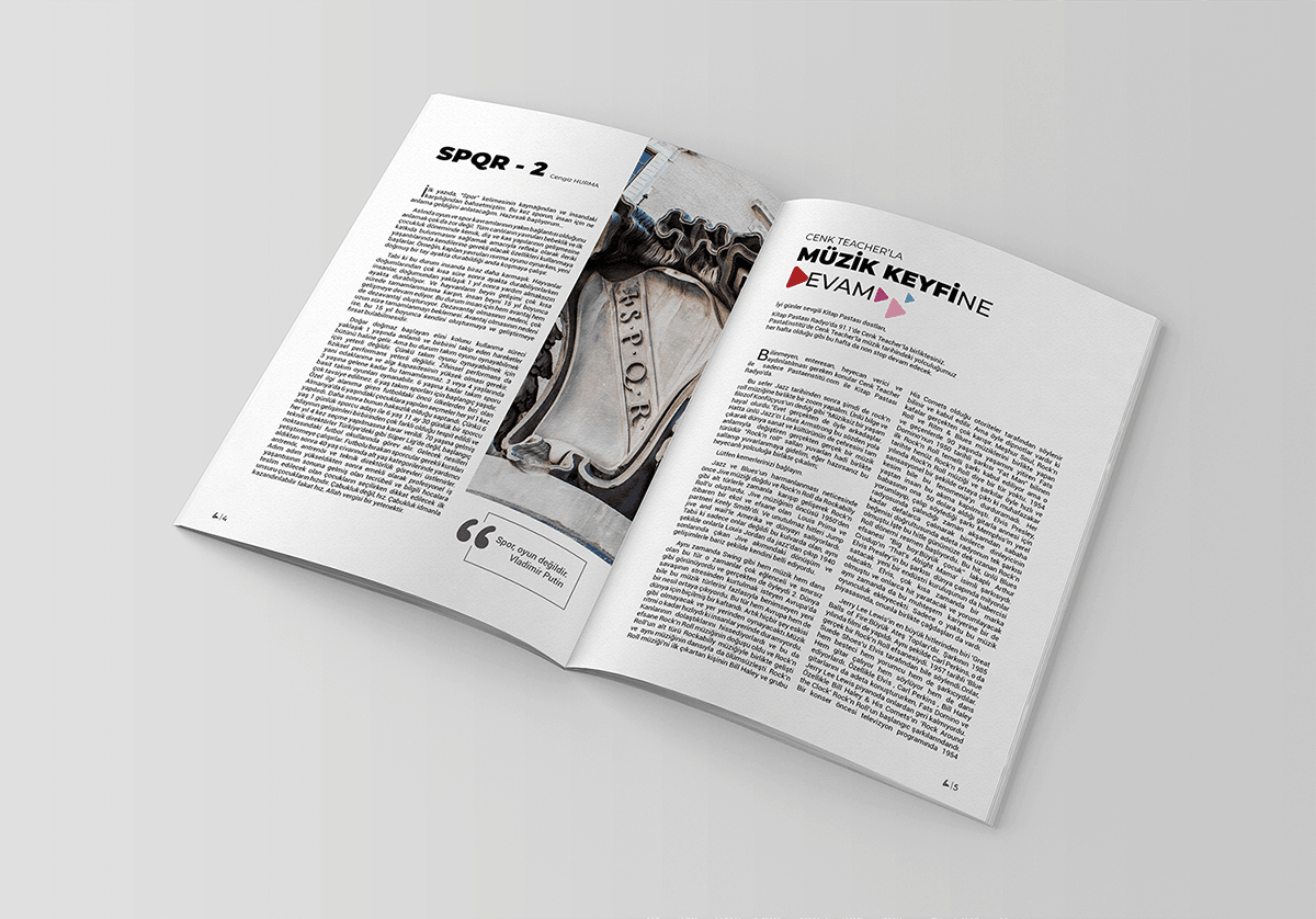 This project, prepared for Kitap Pastası, the monthly culture and arts publication of a book cafe serving book lovers, is a magazine design work that carries the warm atmosphere of the venue into a magazine format. The visual elements, combining the world of books with the cozy environment of the cafe, offer an inviting design language aimed at establishing an emotional bond with the target audience.